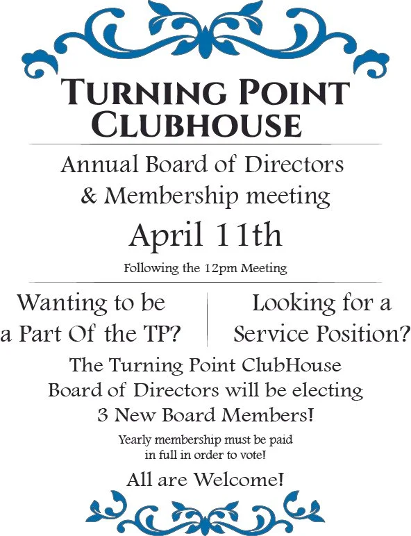 The Turning Point of Acadiana is a non-profit organization that was formed over a half century ago with the vision of providing the Acadiana Area a club house staffed by volunteers to conduct recovery meetings, to give sponsors a place to meet with sponsees and also a place to conduct alcohol and drug free social events throughout the year.
